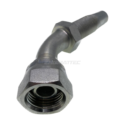 EngmattecHose Tail Reusable BSP Swivel Female 45° Swept – Two Piece Hydraulic Fitting The ENGMATTEC Reusable BSP Swivel Female Hose Tail with a 45° swe...