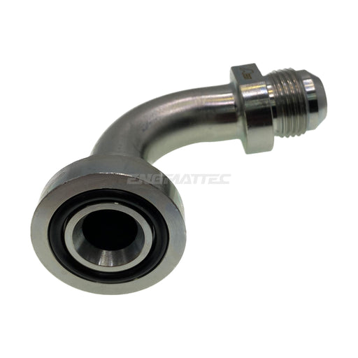 EngmattecFlange Code 62 x JIC Male 90° Swept The Flange Code 62 x JIC Male 90° Swept Adaptor provides a secure, angled connection for hydraulic systems...